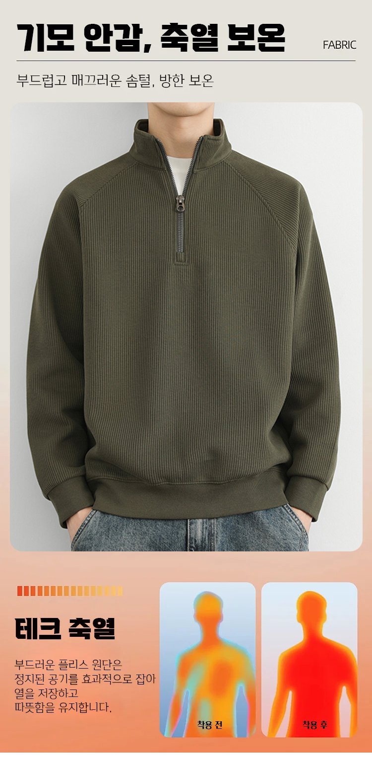남성용 기모 반집업 맨투맨